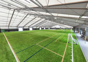 In addition to performance, the unique PVC cladding plays a critical role in the overall athlete experience. The material provides the shade necessary to reduce heat gain while still allowing natural daylight to filter throughout the space. The entire roof effectively functions as a full-span skylight, eliminating the dark, enclosed feel common in traditional structures and often removing the need for artificial lighting during daylight hours.